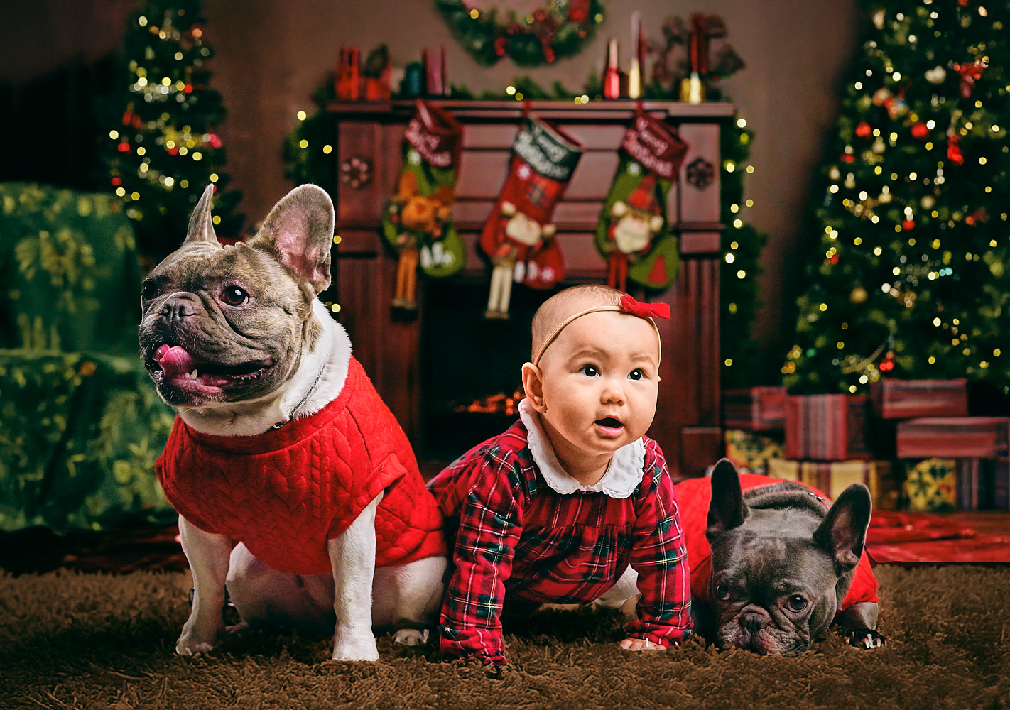 Karácsonyi fotózás esetén az utómunka során a meghitt hangulatú fényelésen van a fő hangsúly. Persze ha valakin feltűnik egy-egy pattanás vagy heg, azt kérésre eltüntethetjük a képekről, de a bőrretus nem tartozik bele a szolgáltatásba.